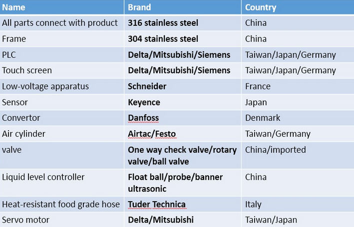 3. Ĉiuj komponentoj, kiuj venas en kontakto kun produkto, estas faritaj el 316 L neoksidebla ŝtalo importita, kaj pretigita per CNC-maŝinoj.
